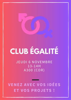 [Club égalité] Réunion le jeudi 6 novembre de 13h à 14h en A300 (CDR)